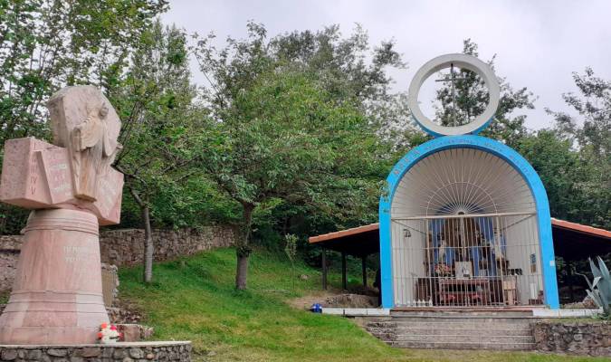Sacha subió a los pinos, al atardecer, cuando el sol poniente alargaba las sombras sobre un suelo elegido por lo divino. En su narración, como hace siempre, entorna los ojos o los cierra, siento que se transforma, es otro ser más espiritual, creo que no estoy a su nivel de sensibilidad y que él lo sabe. No me dice el tiempo que pasó en el lugar donde las niñas dicen que vieron a la Virgen María. Durante su relato hubo muchos silencios, en ellos como en otras ocasiones miraba hacia la Peña Pico Sombrero, las aves en su migración destacaban en negro bajo en cielo azul y no pude por menos que relacionar el cielo azul, el Pico que apunta hacia el más arriba, los pinos, las niñas en Garabandal y mi bienvenido amigo.